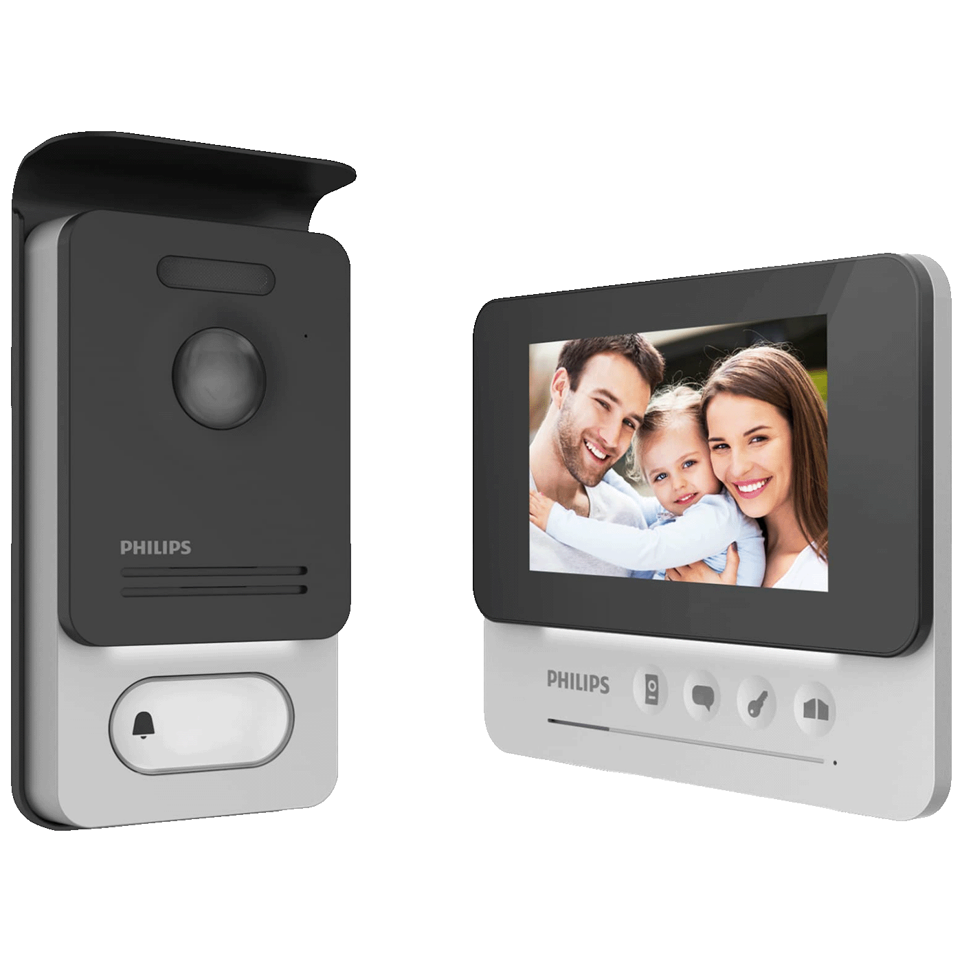 Philips WelcomeEye Compact video interfon komplet je moderan, ali jednostavan za korištenje. Set uključuje ultra tanak ekran od 4,3 inča s podesivom jačinom zvuka i parametrima slike, kao i 6 različitih melodija zvona.