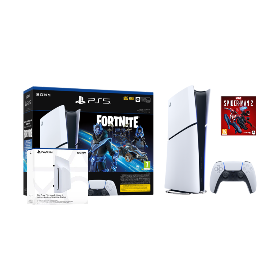 PlayStation 5 Slim Digital Edition D chassis+Playstation Disc drive+ +Fortnite VCH+Marvel”s Spider-Man 2 St. E.VCH 1000045170MSM2V2