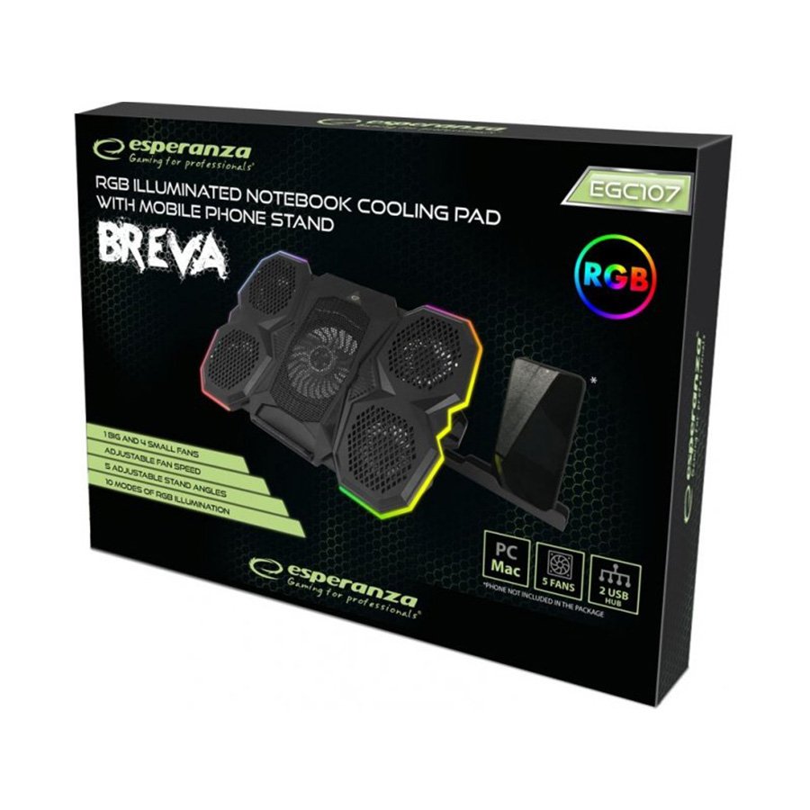Postolje za notebook gaming ESPERANZA RGB ILLUMINATED WITH MOBILE PHONE STAND BREVA EGC107