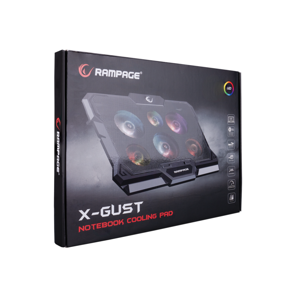 Postolje za notebook gaming RAMPAGE AD-RC10 X-GUST black,ventilator 6x, Rainbow, 35084