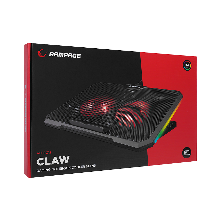 Postolje za notebook gaming Rampage AD-RC12 GAMEZONE Black 2 Fan 2 USB RGB Illuminated 15”-17” Notebook Cooler Stand, 36323