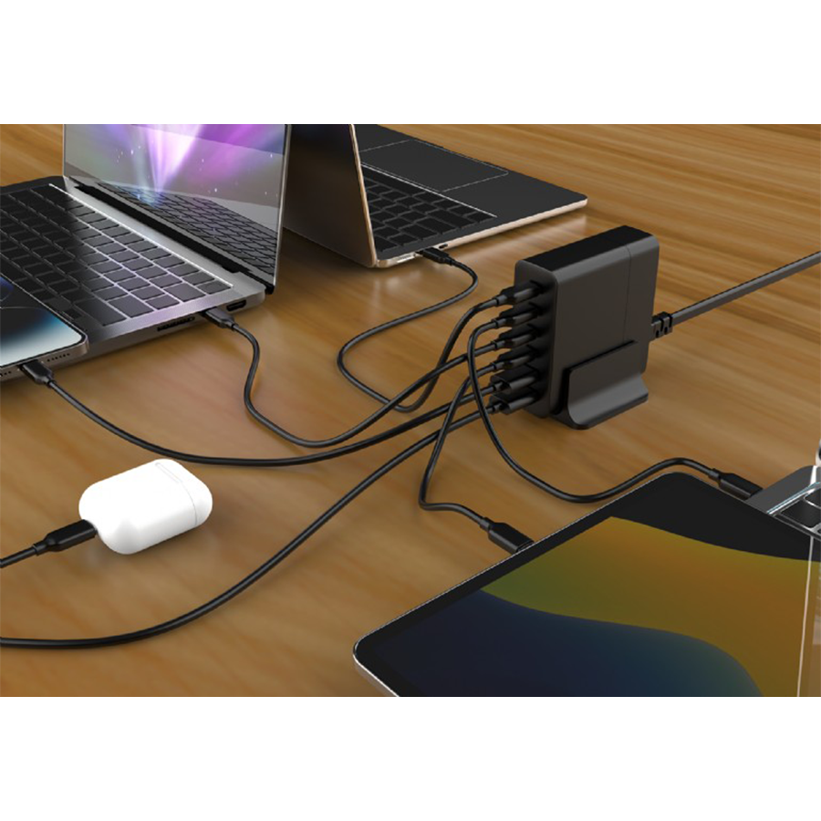 6-port 75 W USB fast charger: supports both QC 3.0 and PowerDelivery (PD) specification