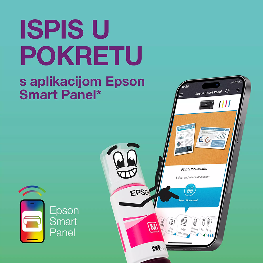 Printer EPSON EcoTank L3560 print/scan/copy/fax Rez.4.800 x 1.200 dpi. 33str/min Monokrom.20str/min Colour. ADF.Duplex.USB, LAN.WiFi. tinte br.103