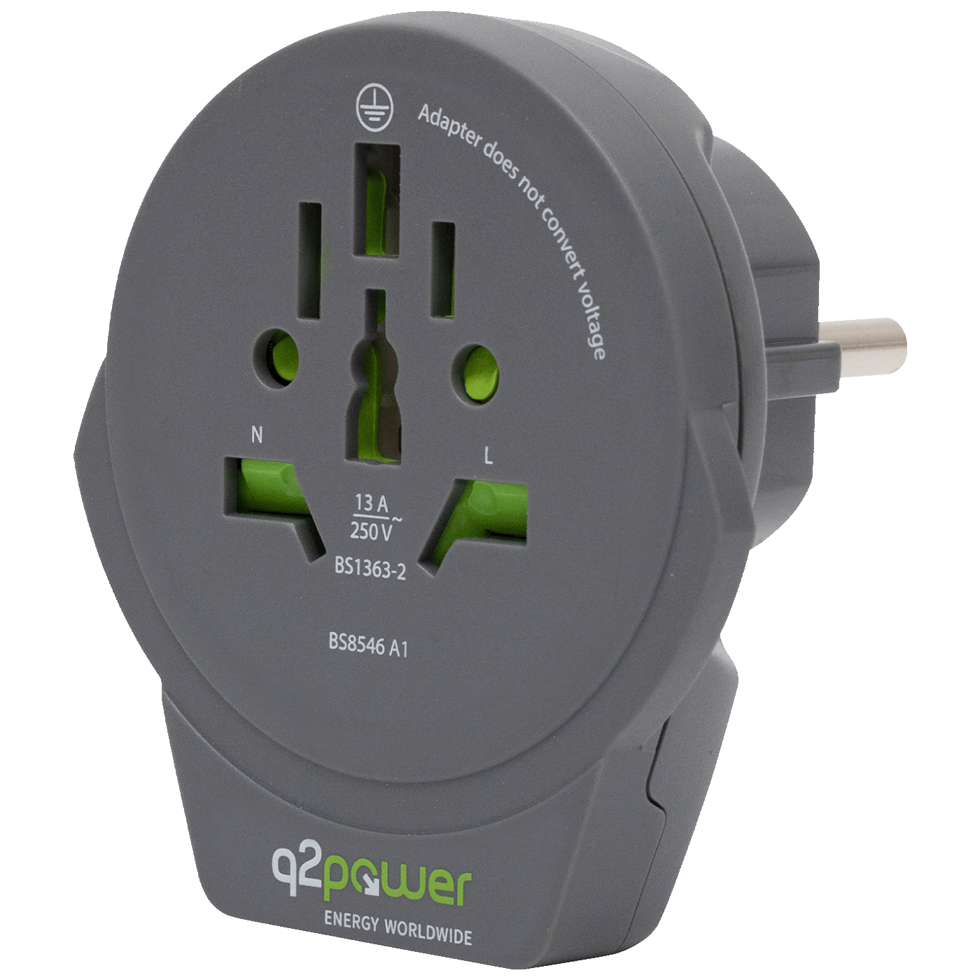 q2power Adapter, putni, univerzalni sa USB-om – World to Europe USB