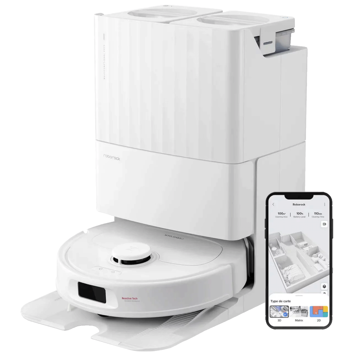 • Napredna stanica za punjenje s funkcijom sušenja, čišćenja krpe i automatskog pražnjenja spremnika za prašinu te mijenjanja vode čistom