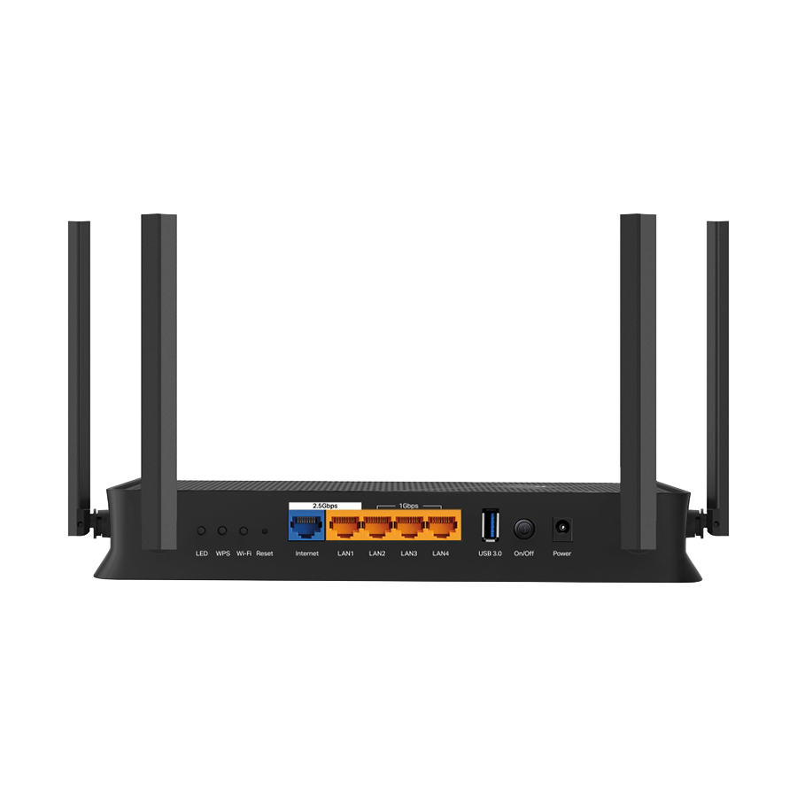 2× 2.5G Ports: 1× 2.5 Gbps WAN port, 1× 2.5 Gbps LAN port and 3× 1 Gbps LAN ports offer high-speed data transmissions.‡