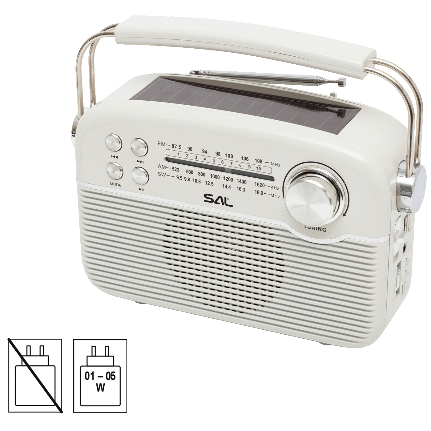 SAL RPR9 je svestrani, energetski učinkovit solarni radio s multimedijskim reproduktorom koji spaja klasično iskustvo slušanja radija s modernim opcijama za glazbu. Zahvaljujući ugrađenoj bateriji, mogućnostima punjenja putem sunca, struje ili USB-a, kao i povezivanju putem Bluetootha i USB-a, ovaj uređaj idealan je za dom, putovanja ili izvanredne situacije poput nestanka struje.