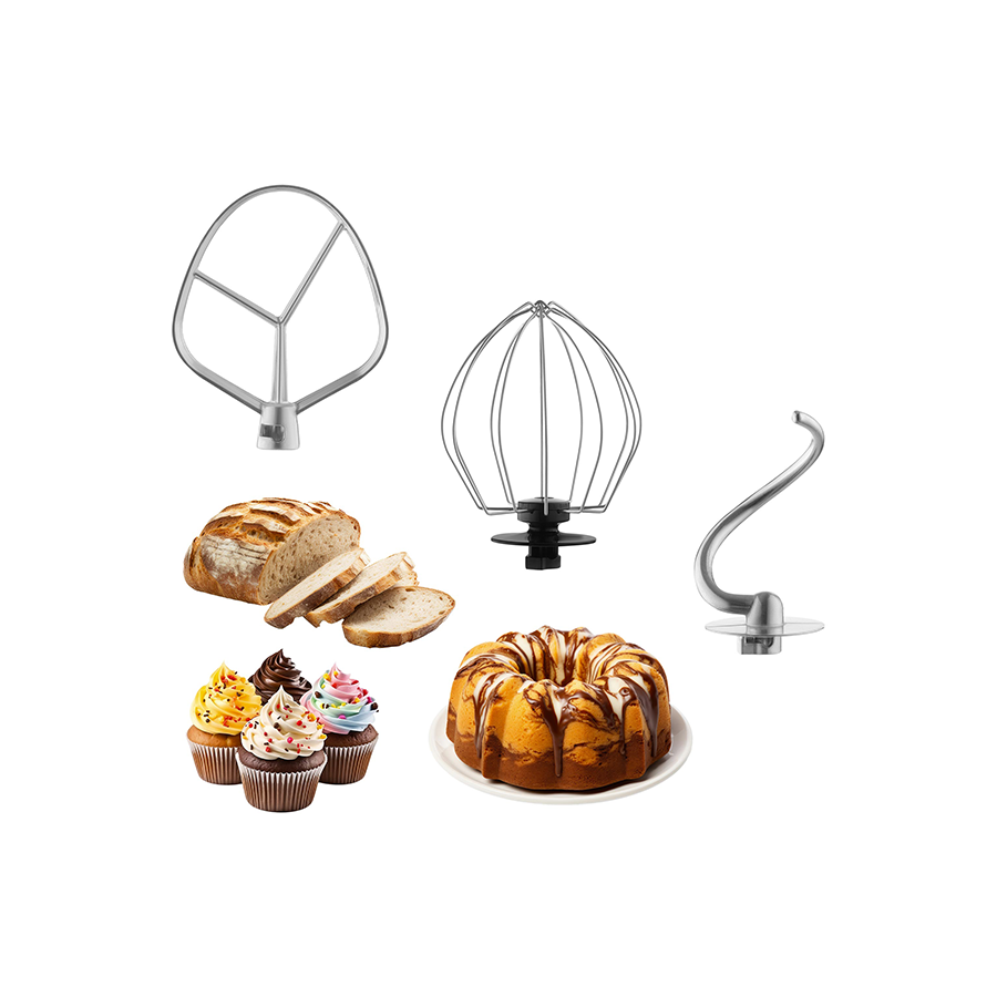 | Specifikacije | Snažan motor od 1300 W za savršene rezultate Velika posuda od nehrđajućeg čelika zapremine 5,5 l za sve vrste tijesta 6 postavki brzine i funkcija PULSE (Impuls) 3 napredna dodatka za gnječenje, pjenjenje Proziran štitnik protiv prskanja s dovodnom cijevi Materijal posude nehrđajući čelik Boja Bijela |