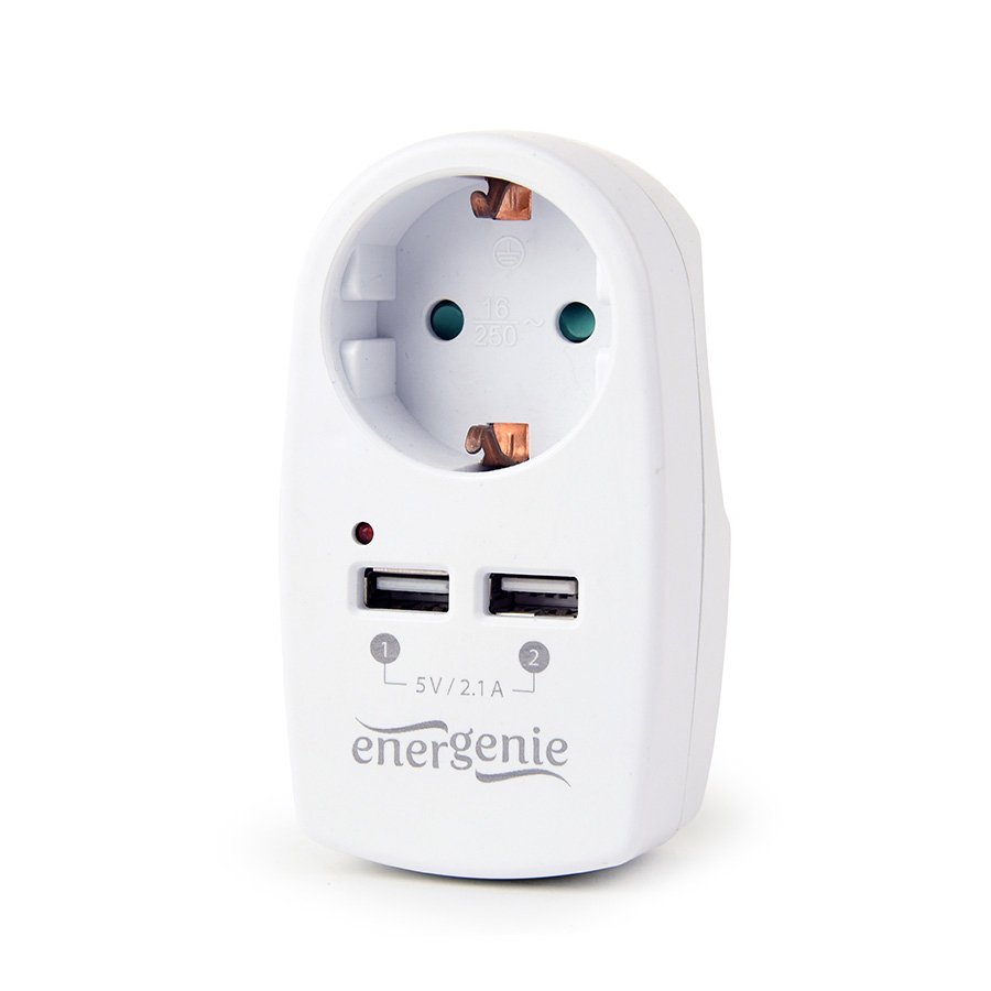 Shuko utičnica sa 1x 220V + 2x USB 2.1A, punjenje mobit, tableta i sl., GEMBIRD, white EG-ACU2-02