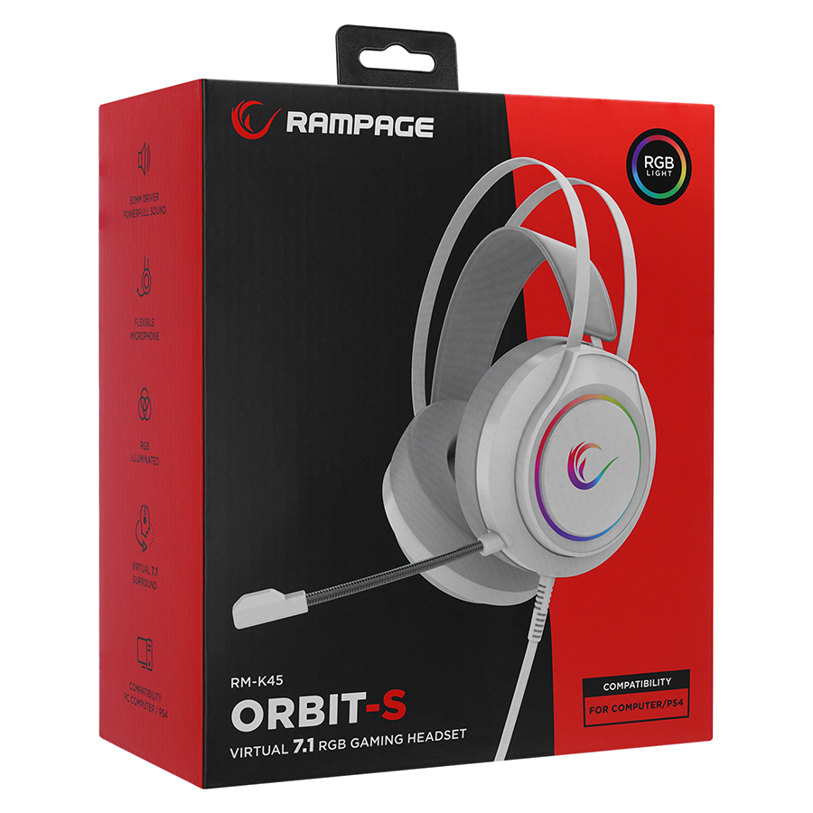 Slušalice sa mikrofonom gaming RAMPAGE RM-K45 ORBIT-S White RGB Led 7.1 Gaming Headset with Microphone, 40794