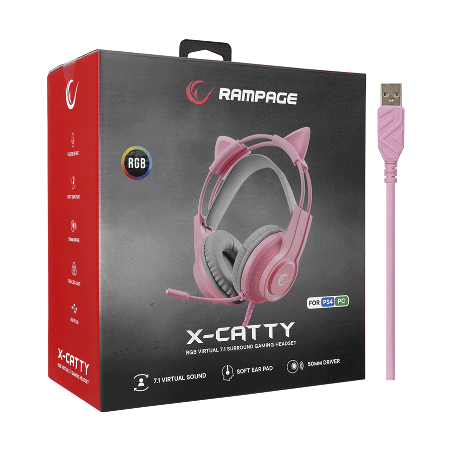 Slušalice sa mikrofonom gaming RAMPAGE RM-K91 X-CATTY Pink USB 7.1 Version RGB Gaming Headset