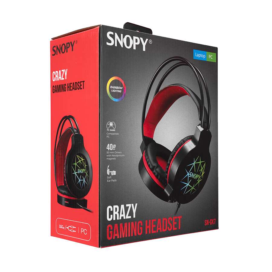 Slušalice sa mikrofonom gaming Snopy SN-GX7 CRAZY Black USB Led Microphone Headset, 31380