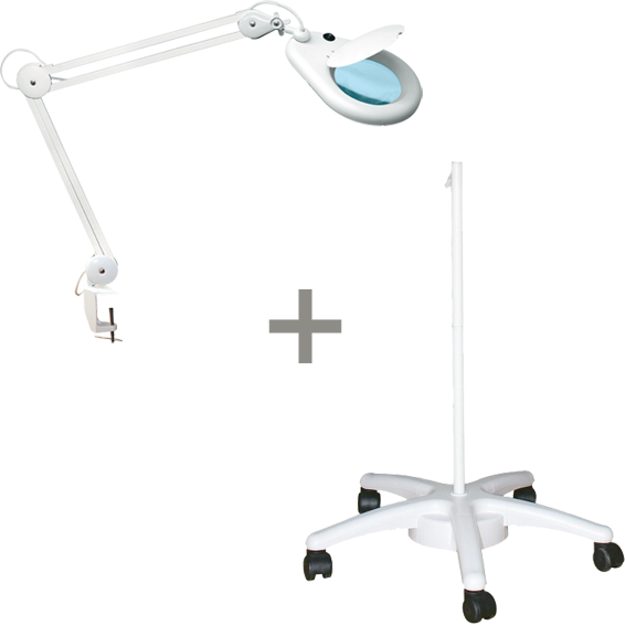 Set, NKL01 sa stalkom NKLA. Stolna lupa sa svjetlom, stakleno sočivo 125mm, 3 x uvečanje, okrugla fluo cijev 22W, zaštitni poklopac, priključni kabl dužine 1,5met, napajanje 230V / 50Hz.