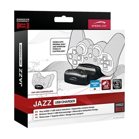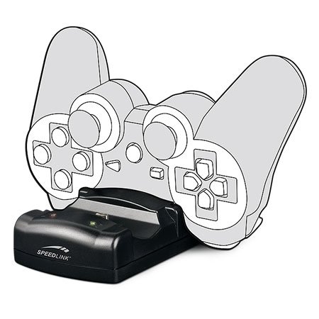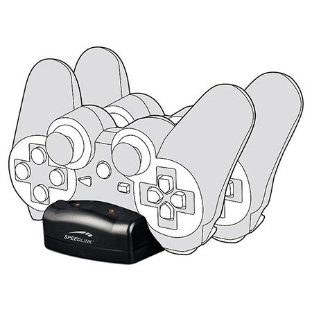 simultaneously charge up to two SIXAXIS®/DUALSHOCK®3 or SPEEDLINK® STRIKE FX controllers (SCPH-98040, 98050, 98051, 98052, 98053, 98055; SL-4443-SBK-01)