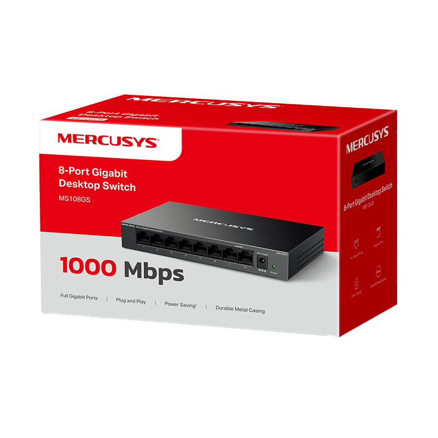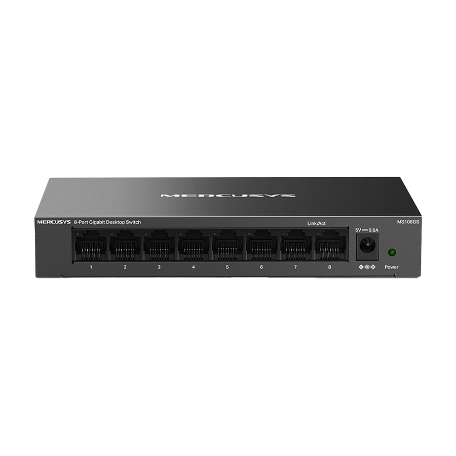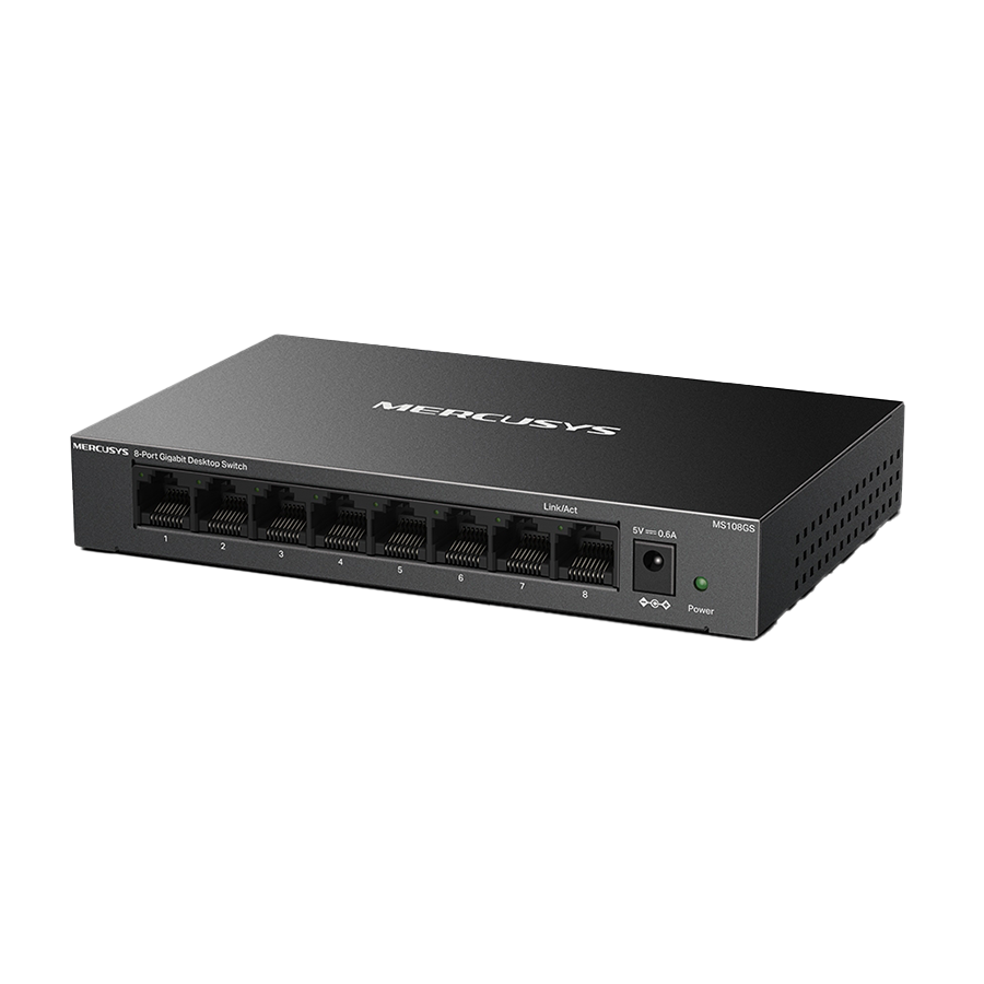 Mercusys MS108GS 8-Port Gigabit Desktop Switch, 8× Gigabit Ports, Desktop Steel Case, Wall Mounting, Plug and Play, Power Saving, Compact design, Green Ethernet technology, Silent