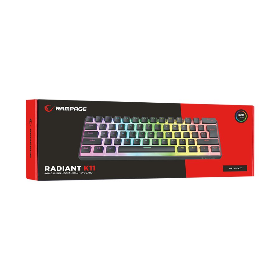 Tastatura gaming RAMPAGE RADIANT K11 black, Type-C, RGB, blue switch, US layout, pudding keycaps