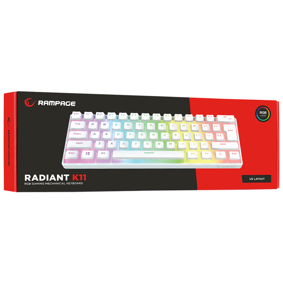 Tastatura gaming RAMPAGE RADIANT K11 white, red switch, Type-C, RGB, US Layout, pudding keycaps, 38969