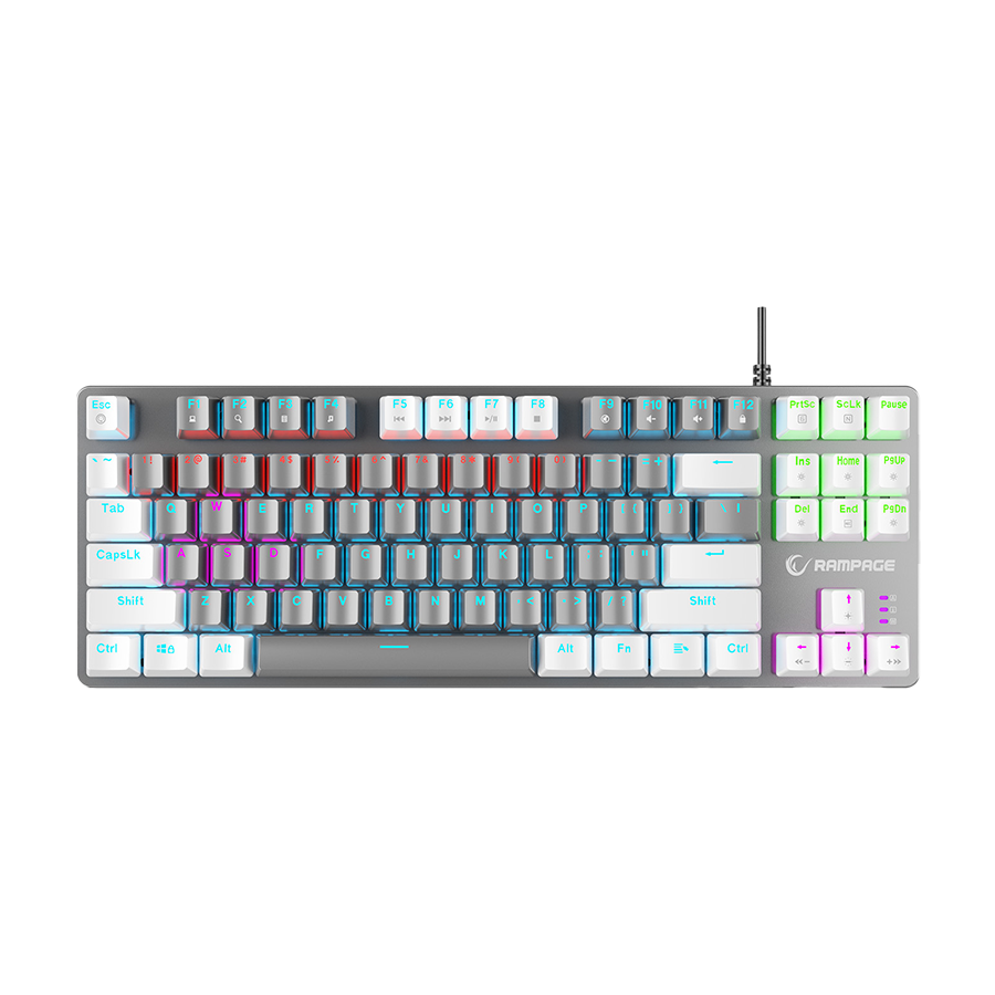 Tastatura gaming RAMPAGE Snug K14 Gray/White Blue Switch Mechanical Gaming Keyboard ENGLISH Layout English Rainbow TKL, 41853