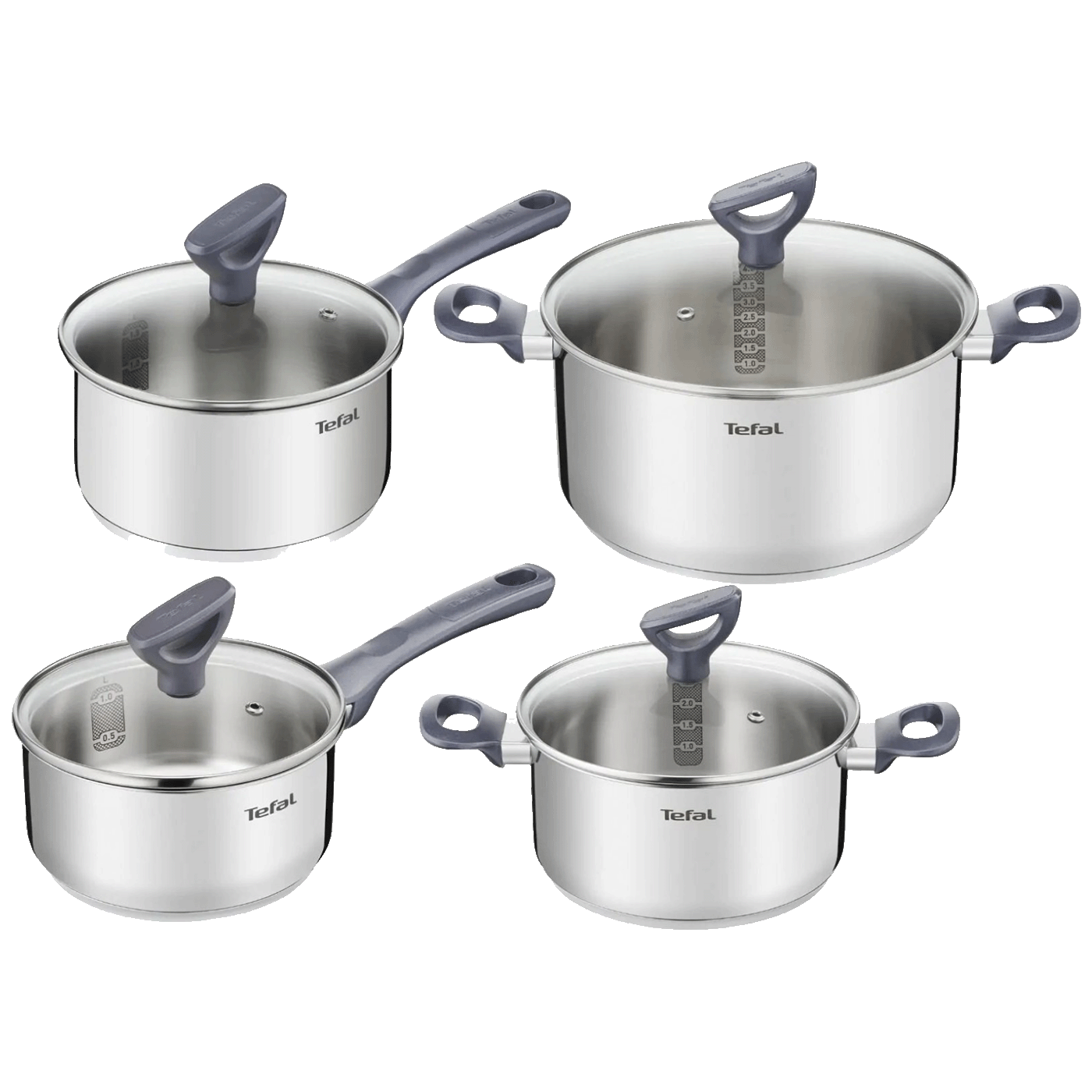 Set uključuje lonac od 18 cm, lonac od 20 cm, lonac od 24 cm i lonac od 16 cm, s pripadajućim poklopcima.