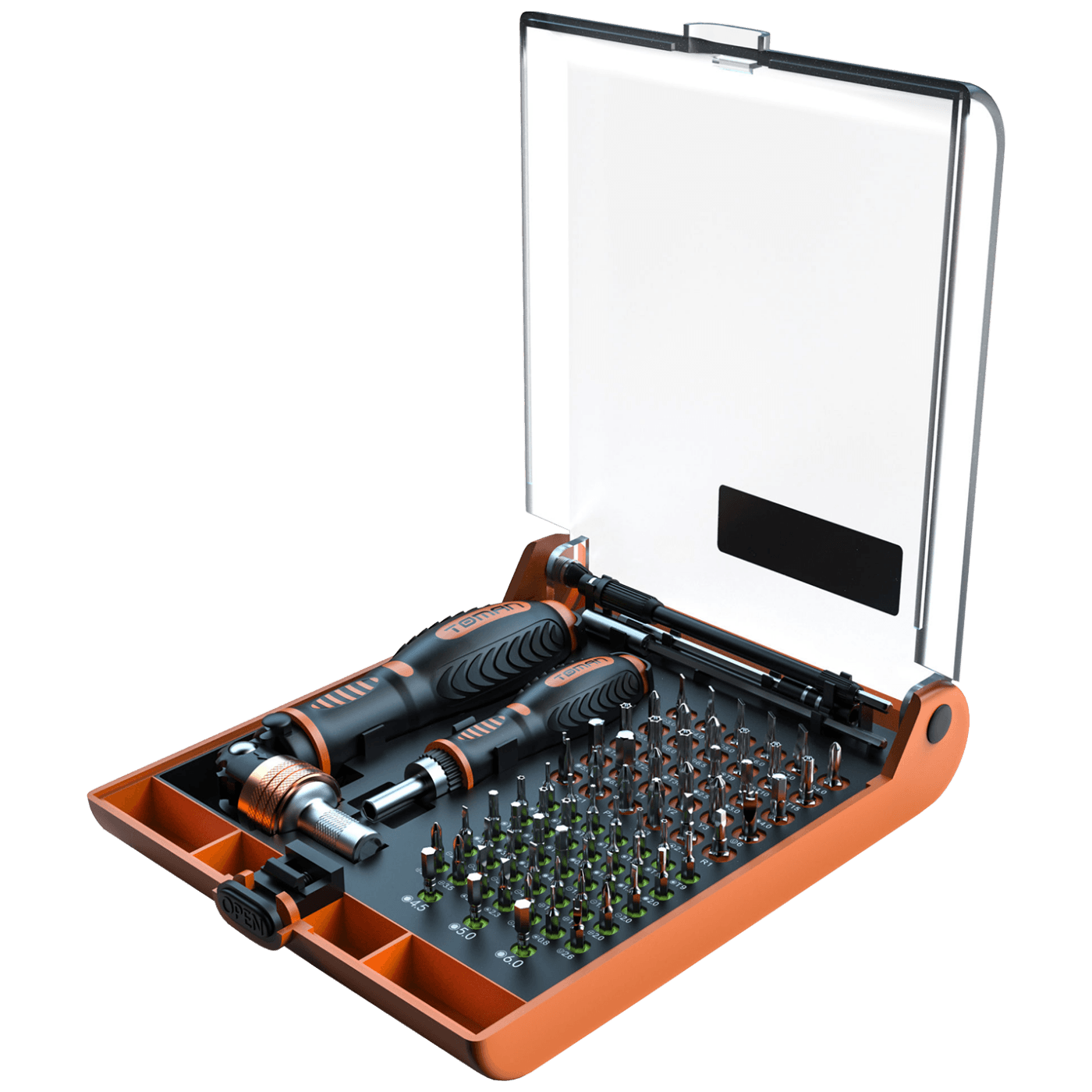 Komplet preciznih alata TT7300 sadrži različite vrste podesivih bitova odvijača za različite vrste vijaka. Odvijač s podesivim kutom do 180 stupnjeva. Dizajniran s neklizajućom teksturiranom ručkom za veću udobnost i sigurnost.