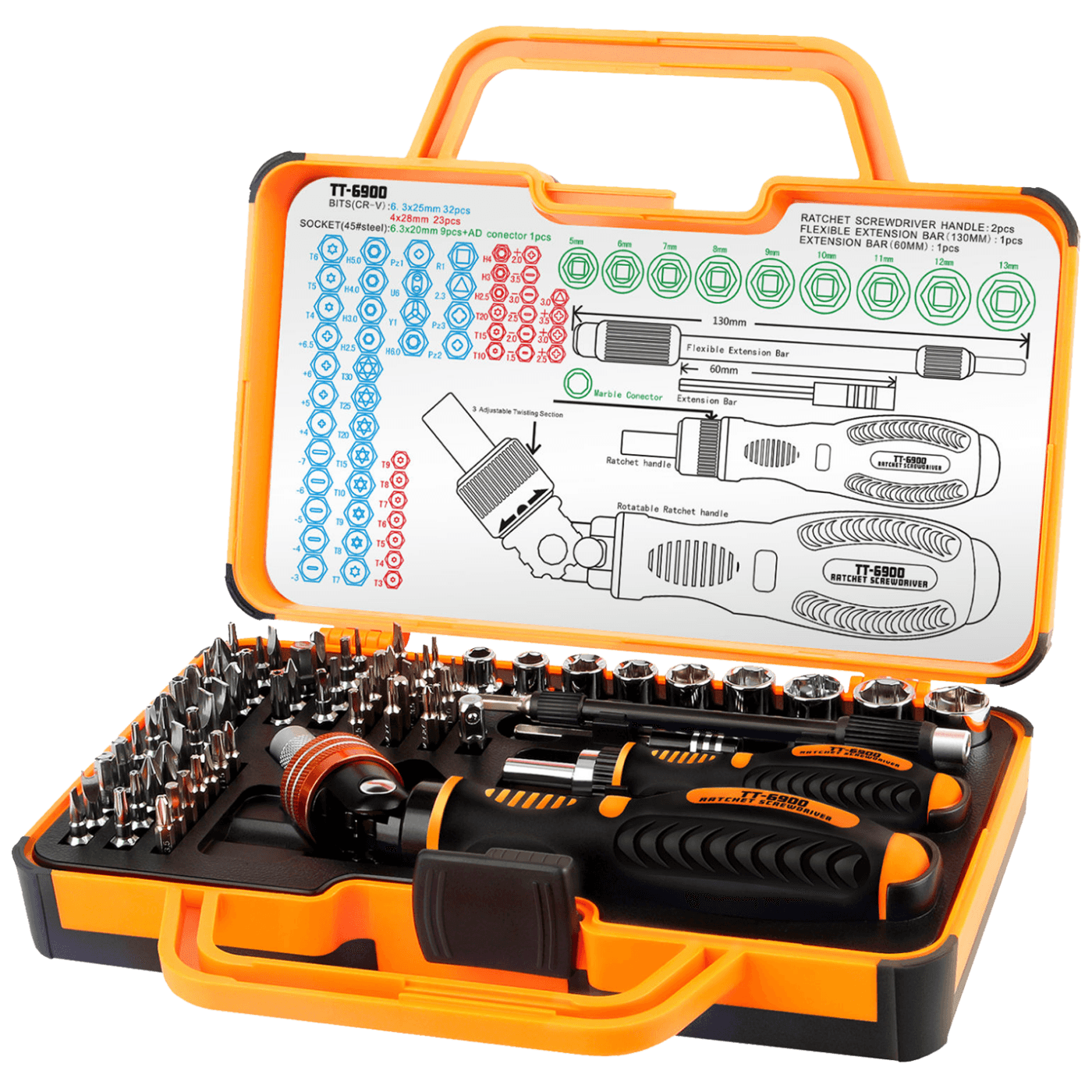 Za precizan rad, neklizajuće ručke, fino obrađeni alati + fleksibilni produžetak. Sve u jednom, što je neophodno za rad oko kuće. Zbog male veličine i male težine, može se ponijeti bilo gde. Kutija za skladištenje velike čvrstoće sa ručicom.