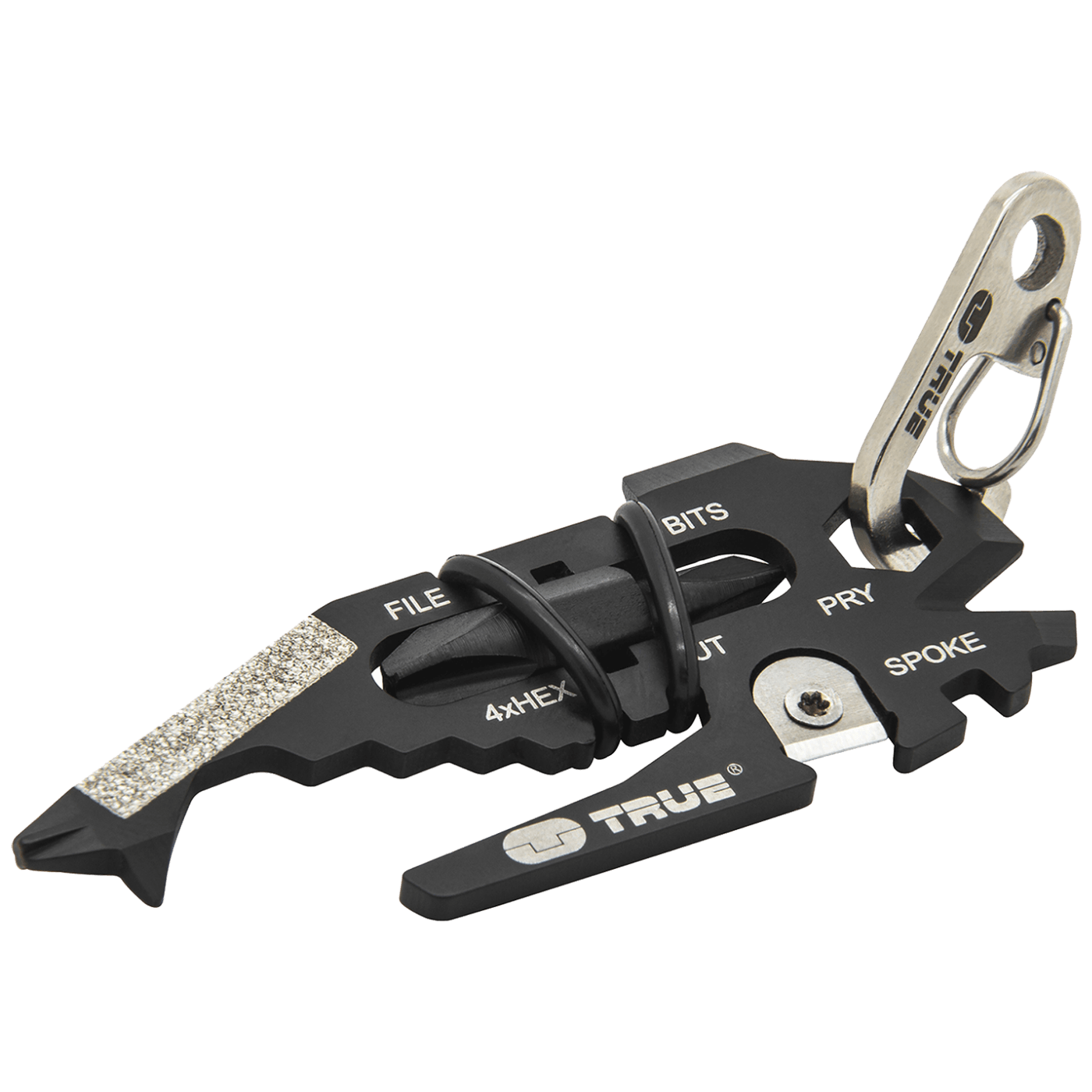 Izrađen od nehrđajućeg čelika obloženog crnim titanom, ovaj višenamjenski proizvod uključuje niz alata: karabinjer, mali / srednji / veliki odvijač s ravnom glavom, zatezač, ključ, sigurnosna oštrica, ključ 4 mm / 6 mm / 1/4 "/ 8 mm / 10 mm, otvarač za boce, mali / srednji / veliki Phillips odvijač, turpija