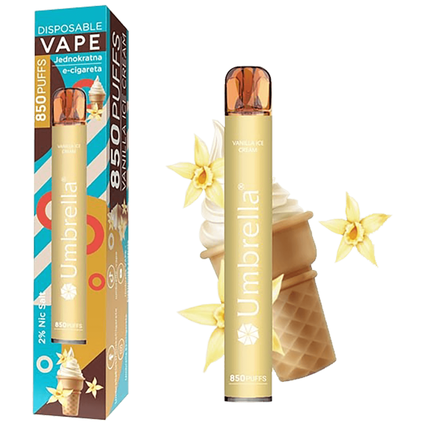 Jednokratna elektronska cigareta Umbrella 850 puffs Vanilla Ice Cream – Najbolji ukus sladoleda od vanile koji ste do sada probali.