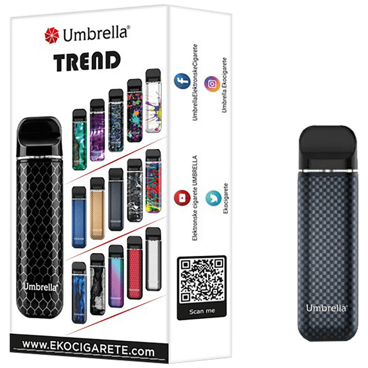 Umbrella Trend je uredjaj koji pripada POD sistemima, elegantnog dizajna i moćne baterije od čak 800mAh. Maksimalna izlazna snaga od 25W pruža veliku količinu pare uz bogat ukus. Uređaj nema taster za aktivaciju već se automatski aktivira šta mu daje dodatnu dozu jednostavnosti pri korišćenju. Namijenjen je početnicima koji žele pravi doživljaj korišćenja klasične cigarete.