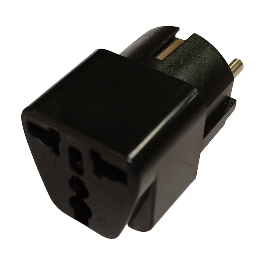 Univerzalni AC strujni adapter UK/EU, 3 flat plug to 2 pin plug adapter, crni