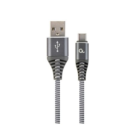 USB 2.0 kabl Premium cotton braided Type-C USB charging and data cable, 2m, spacegrey/white, GEMBIRD CC-USB2B-AMCM-2M-WB2