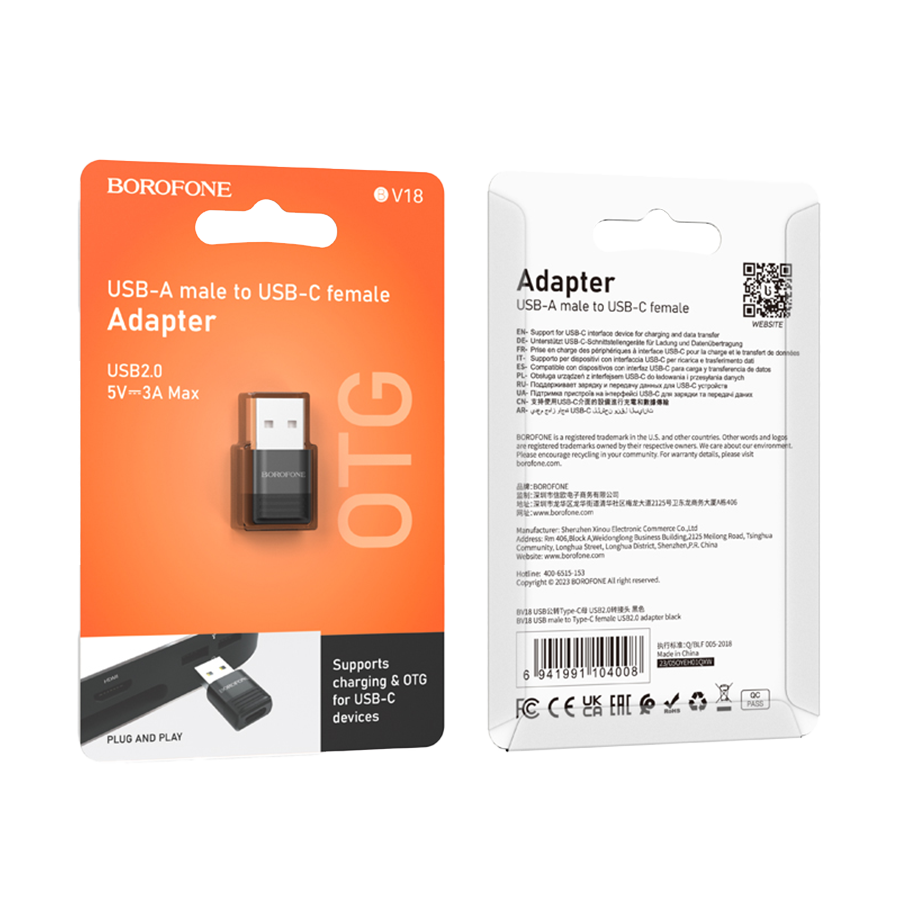 USB adapter BOROFONE BV18 USB male to Type-C female USB2.0 adapter black