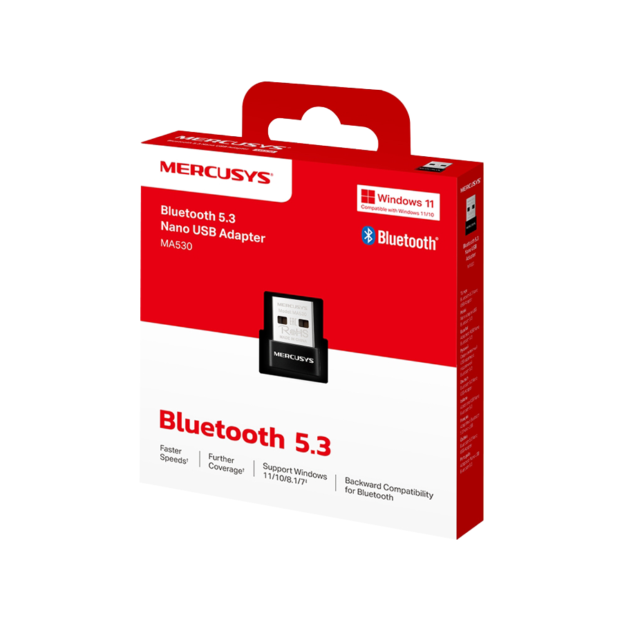 USB Bluetooth dongle Mercusys MA530 Bluetooth 5.3 Nano USB Adapter, Bluetooth 5.3, Nano-Size, USB 2.0, Supported operating systems include Win 11/10/8