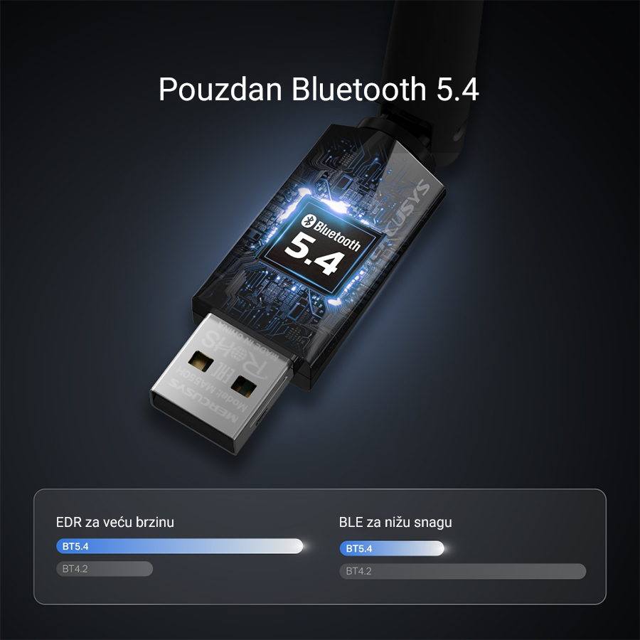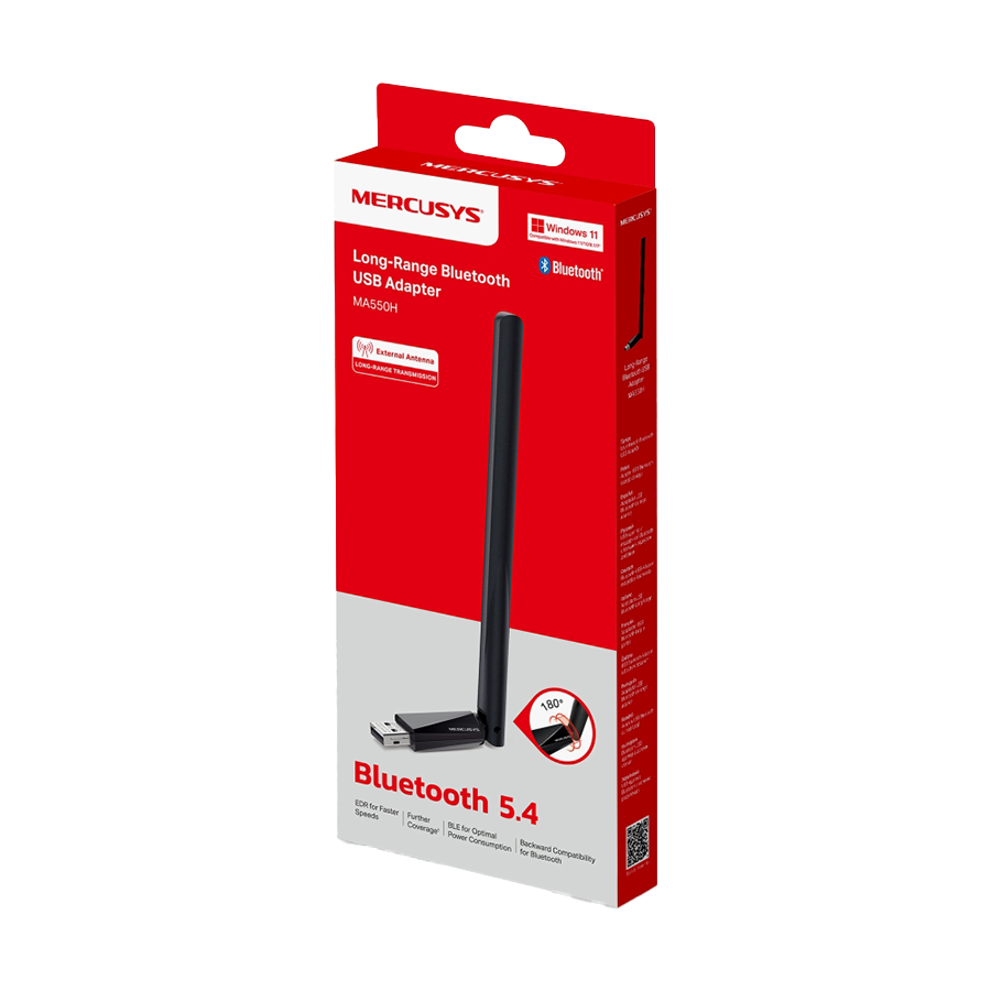 USB Bluetooth dongle Mercusys MA550H Long Range Bluetooth USB Adapter, Bluetooth BT 5.4, 1x High Gain External Antenna, USB-A, Bluetooth Low Energy