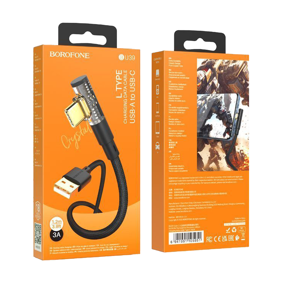 USB kabal BOROFONE BU39 Rio Transparent Discovery Edition charging data cable Type-C black 1,2m, 2,4 A
