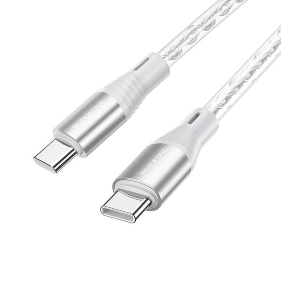 USB kabal BOROFONE BX96 Ice crystal 60W, 3A silicone charging data cable 1m, Type-C to Type-C gray
