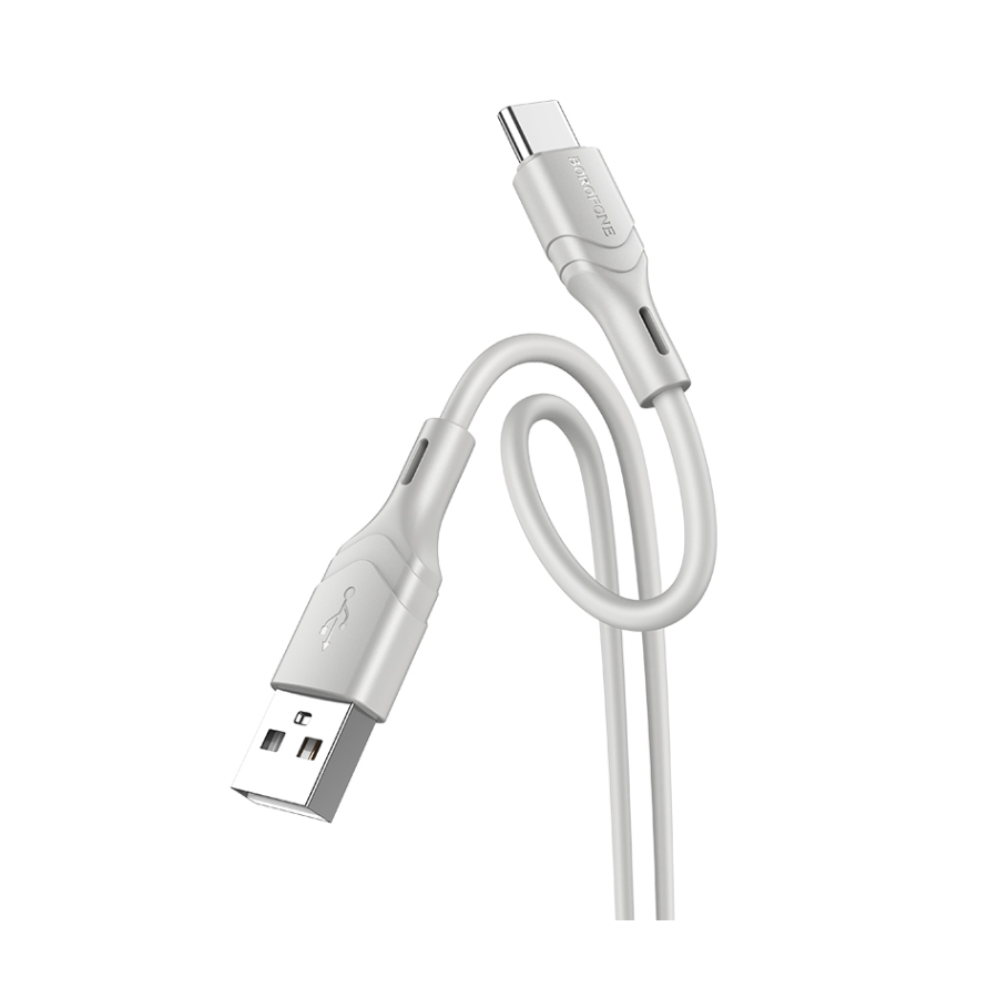 USB kabal BOROFONE BX99 3,0 A, Method silicone charging data cable 1m, USB to type-c gray