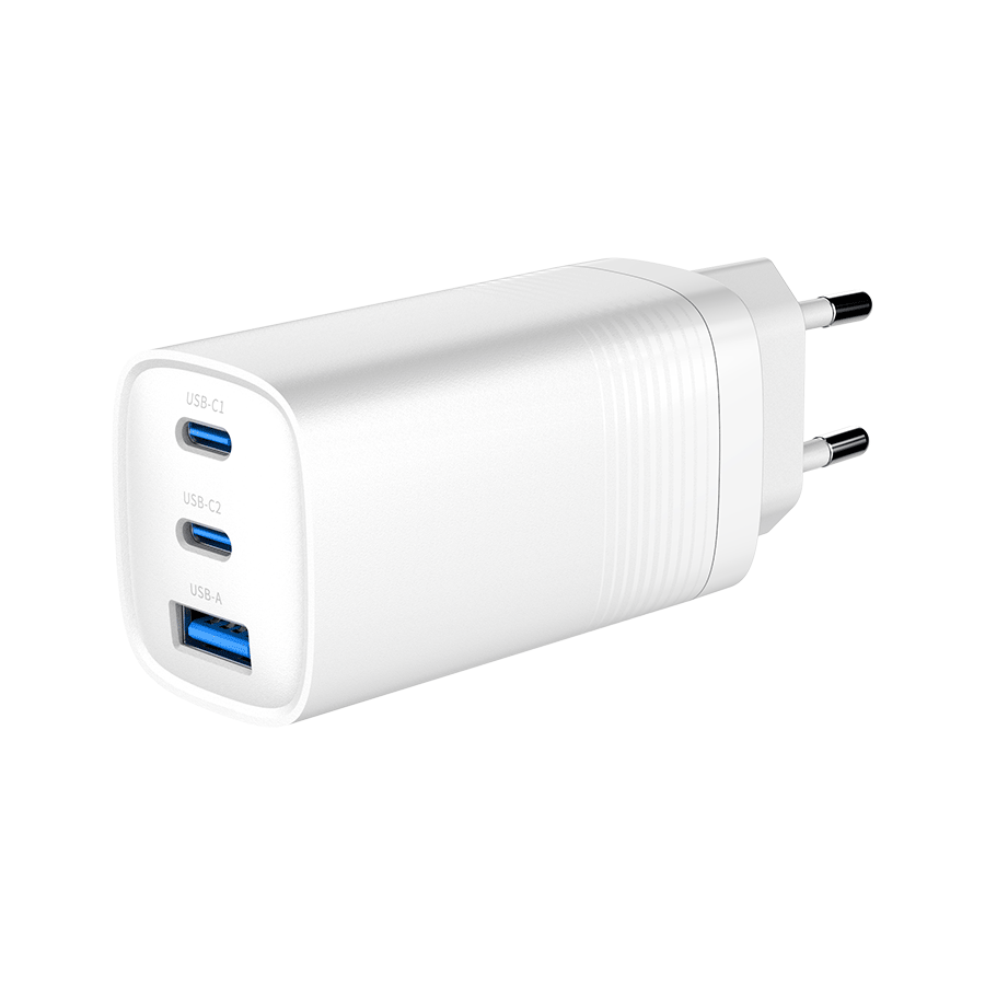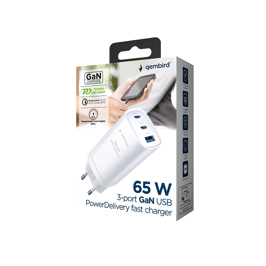 USB punjač 2xType-C + 1xUSB-A fast charger, 65W PD, white GEMBIRD, TA-UC-PDQC65-01-W