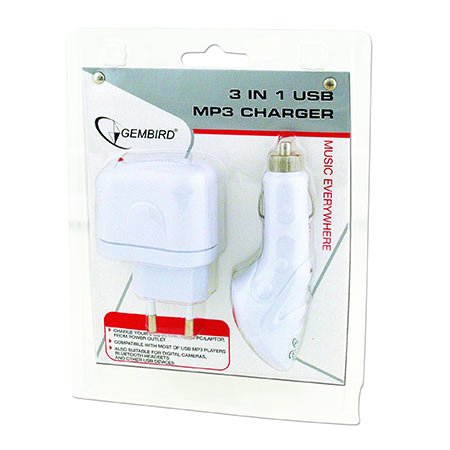 USB punjač za MP3 player, 3 in 1, GEMBIRD MP3A-UC-AC3