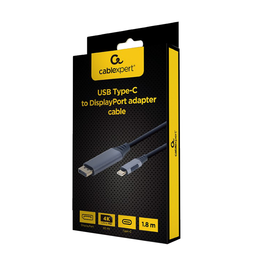 Video adapter kabl Type-C to DisplayPort, space grey, 1.8 m, 4K 60 Hz, GEMBIRD CC-USB3C-DPF-01-6