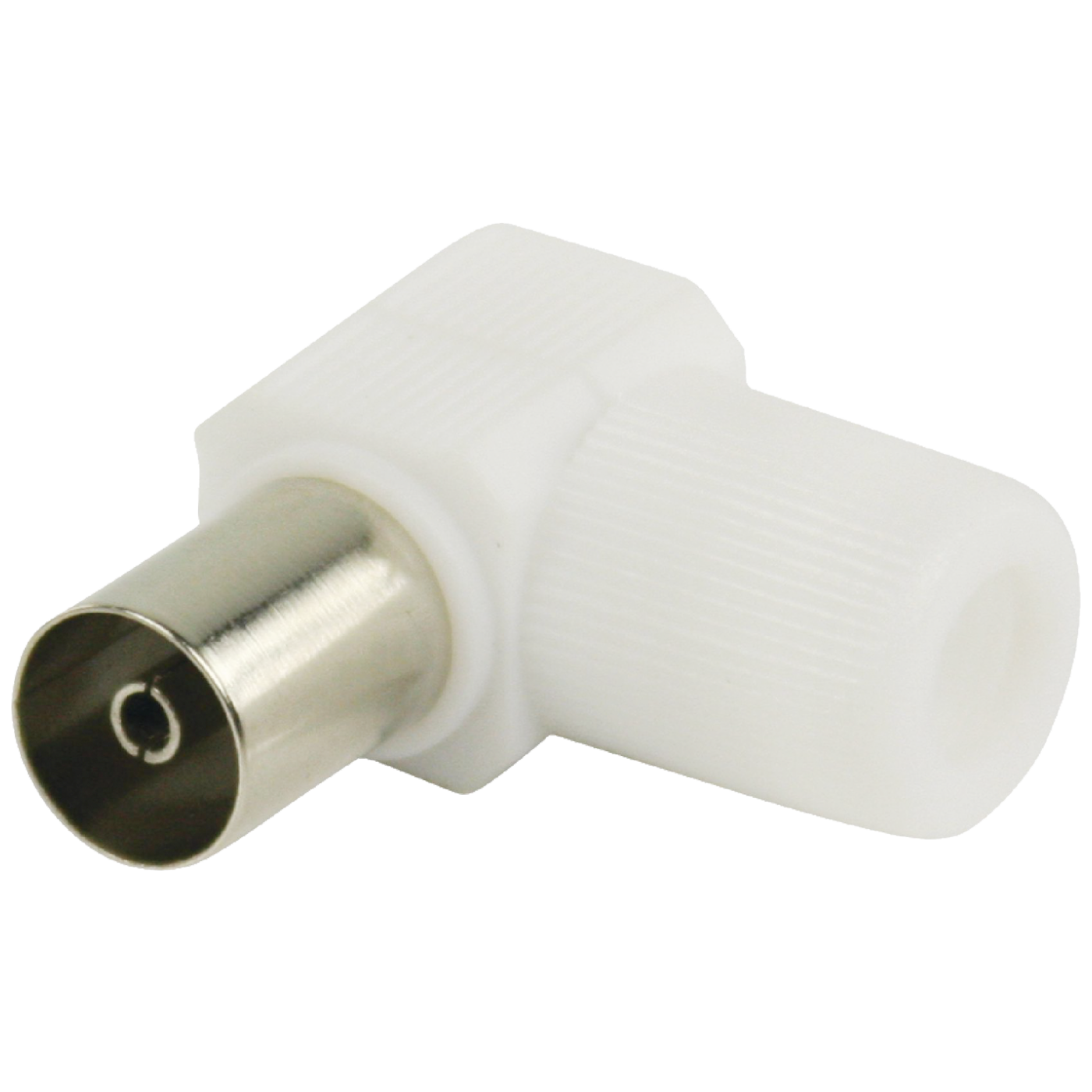 Antenska utičnica (ženska), IEC 9.5 mm, materijal plastika, oblik kutni, boja bijela. 1 kom.