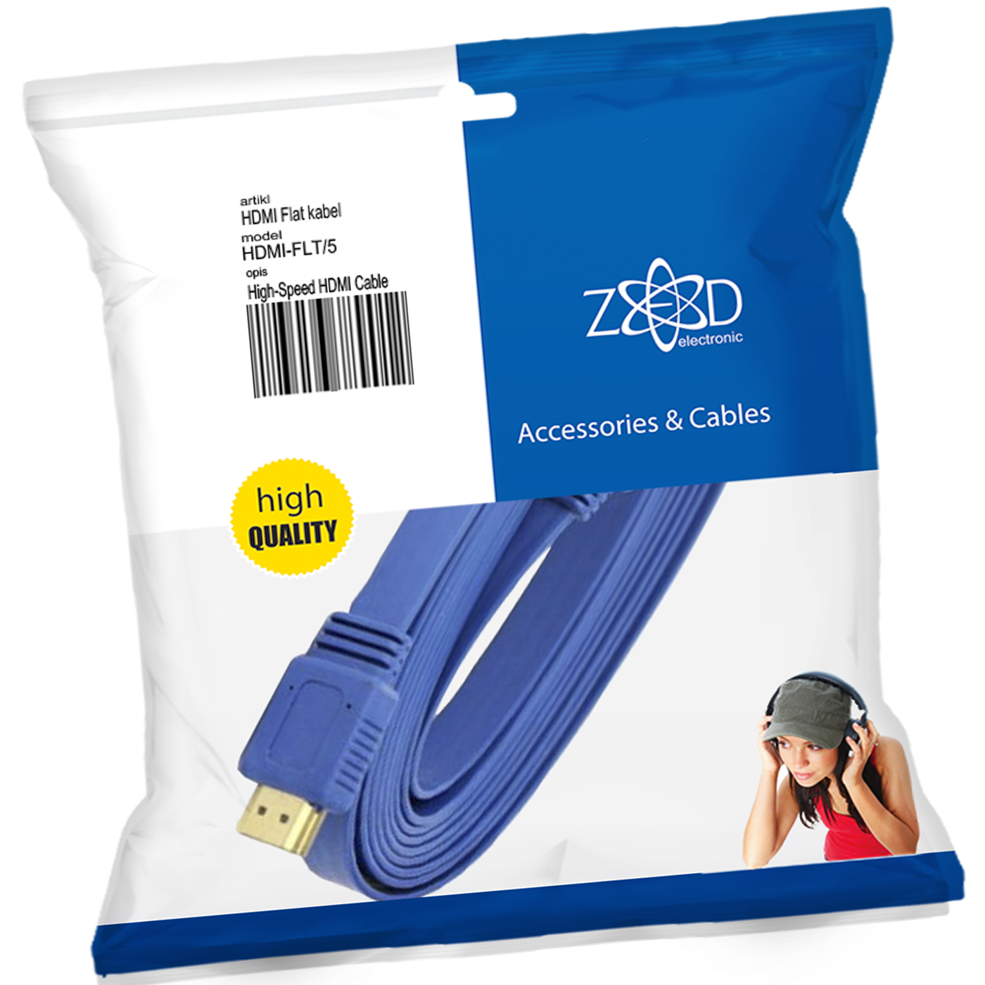 HDMI kabel flat, plosnati, dužina 5.0 met, ver. 2.0, 3D, Ethernet
