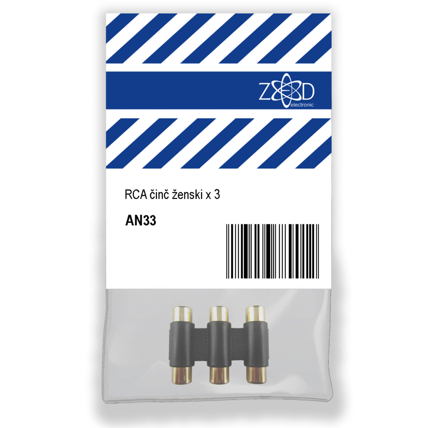 ZED electronic RCA činč ženski x 3, za produžetak audio kabla – AN33
