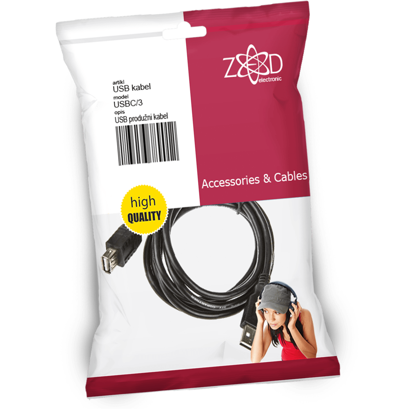 USB muski na USB zenski, blister pakiranje sa EAN kodom, 1 kom.