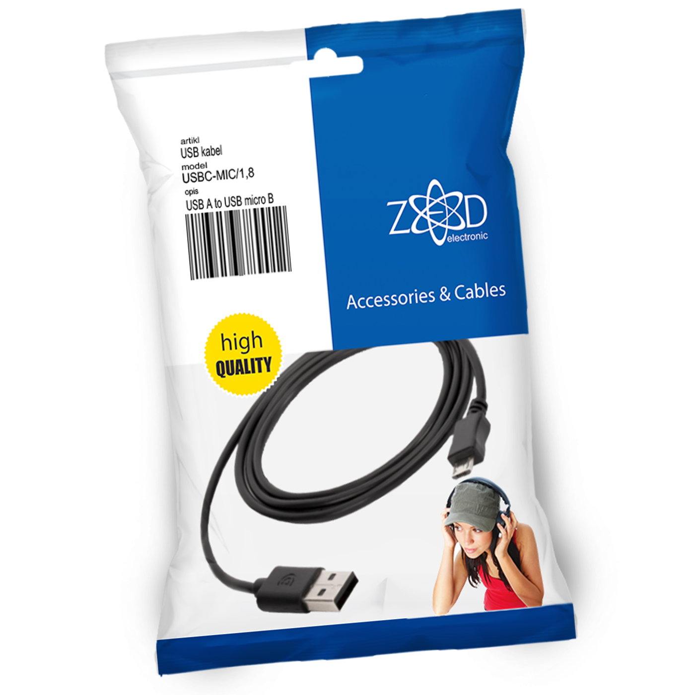 Kabel USB 2.0 na USB Micro konektor, 1.8 met., pogodno za sve nove mobilne uređaje, blister pakiranje sa EAN kodom, 1 kom.