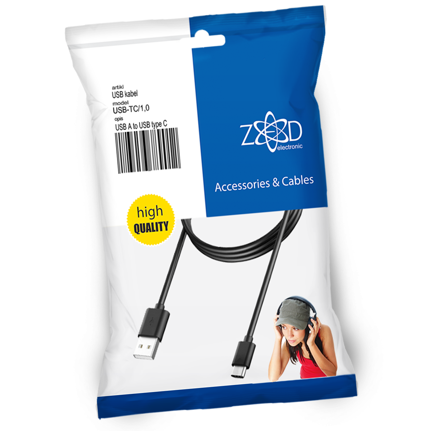 USB A na USB type C, dužina 1.0 metar, blister pakiranje sa EAN kodom.