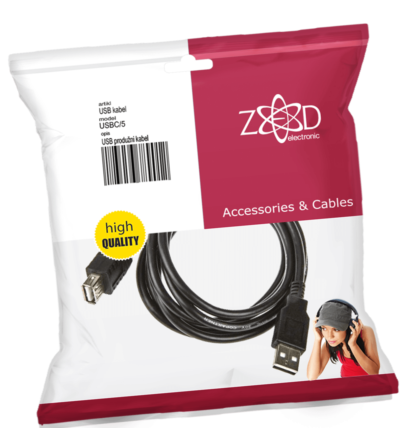 Produžni USB kabel A-A, dužina 5 metar, verzija USB 2.0 USB muški na USB ženski, blister pakiranje sa EAN kodom, 1 kom