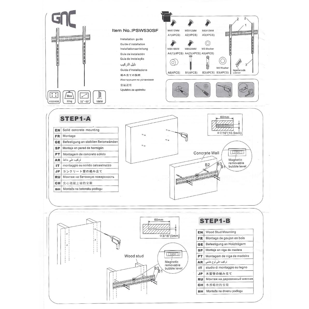 Zidni nosač GNC PSW530SF, 32”-65”, 30kg, VESA 400×400, super slim profile 18mm