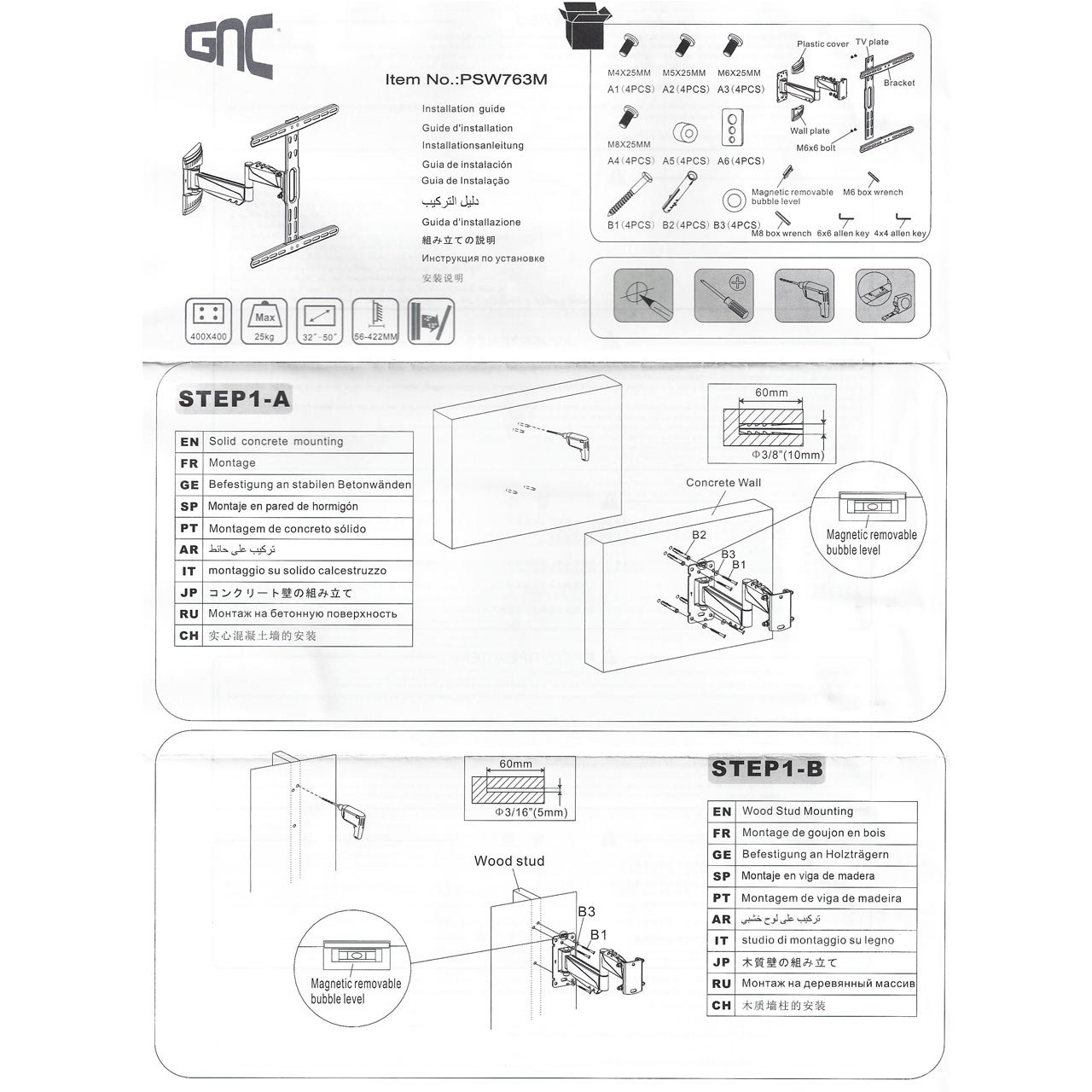 Zidni nosač GNC PSW763M, 32”-55”, 25kg, VESA 400×400