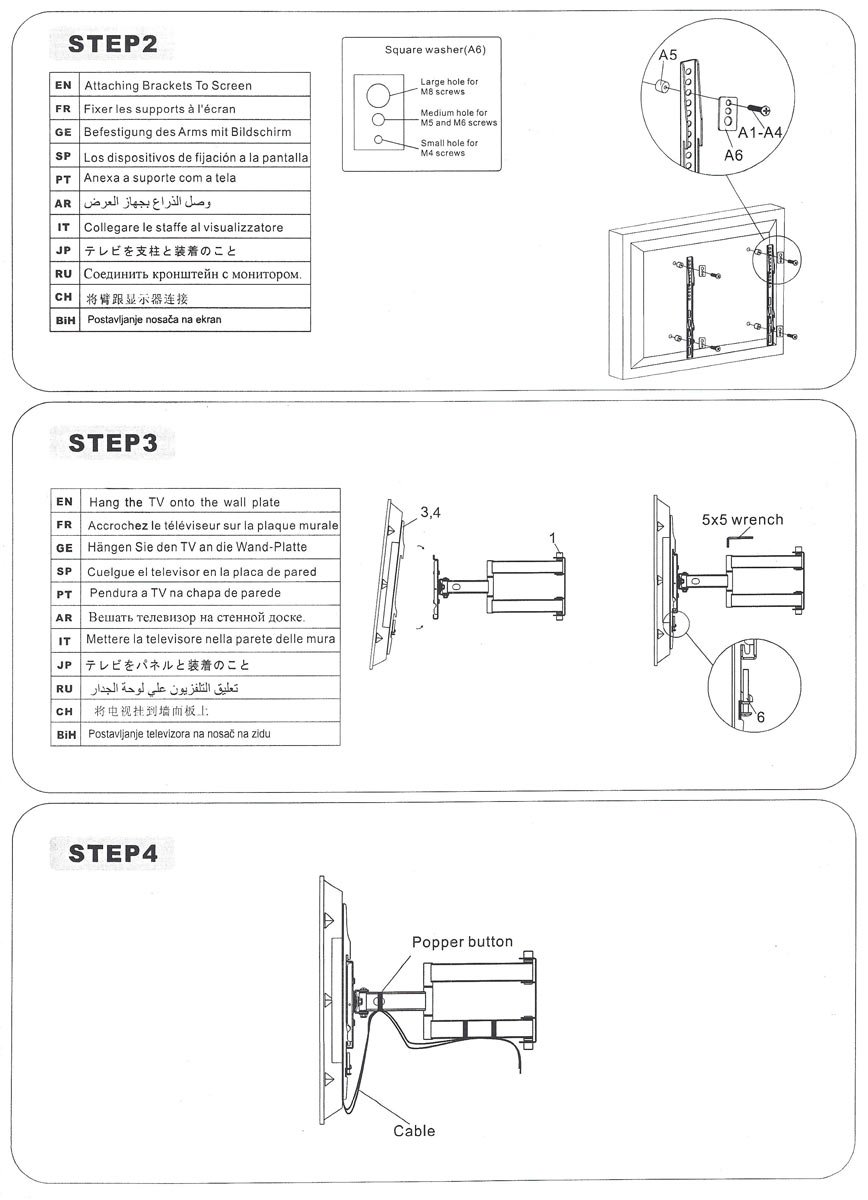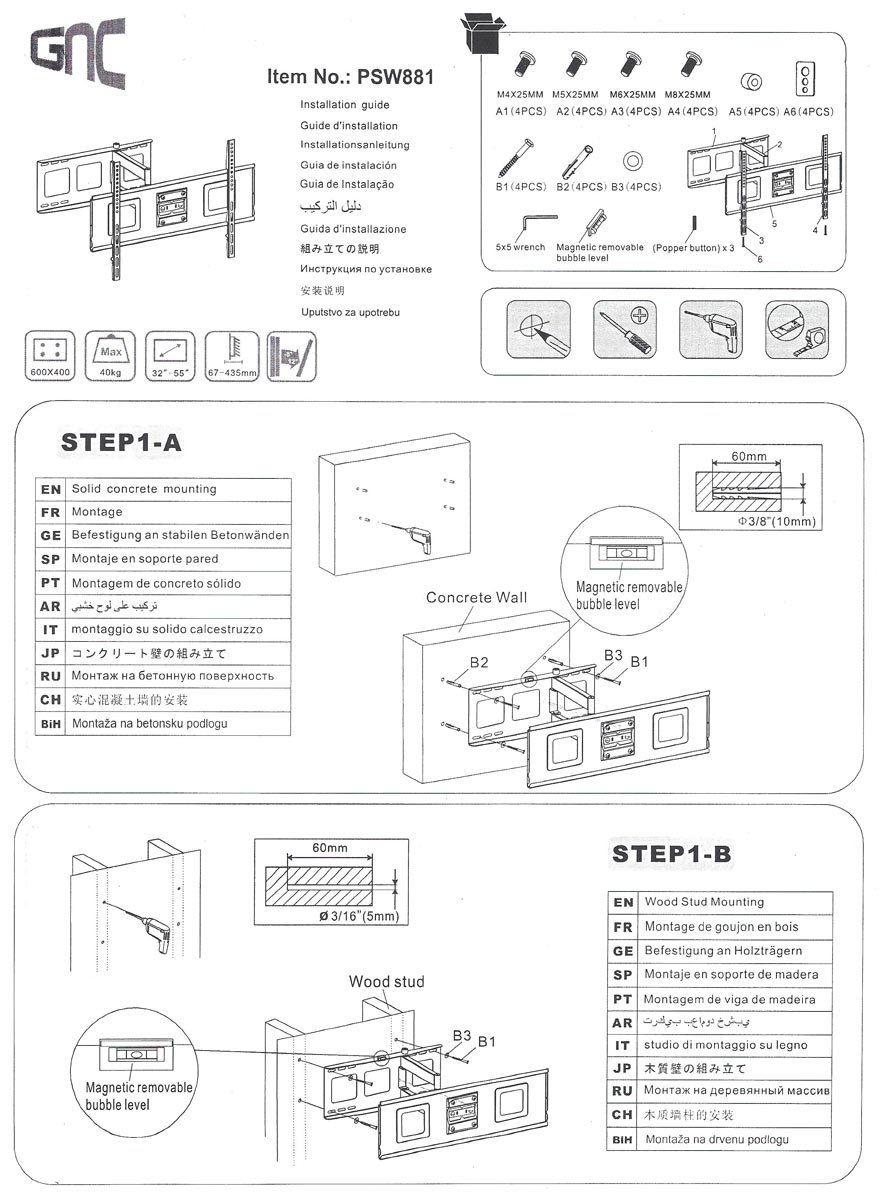 Zidni nosač GNC PSW881, 32”-65”, 40kg, VESA 600×400, nagib -8 do 12 stepeni