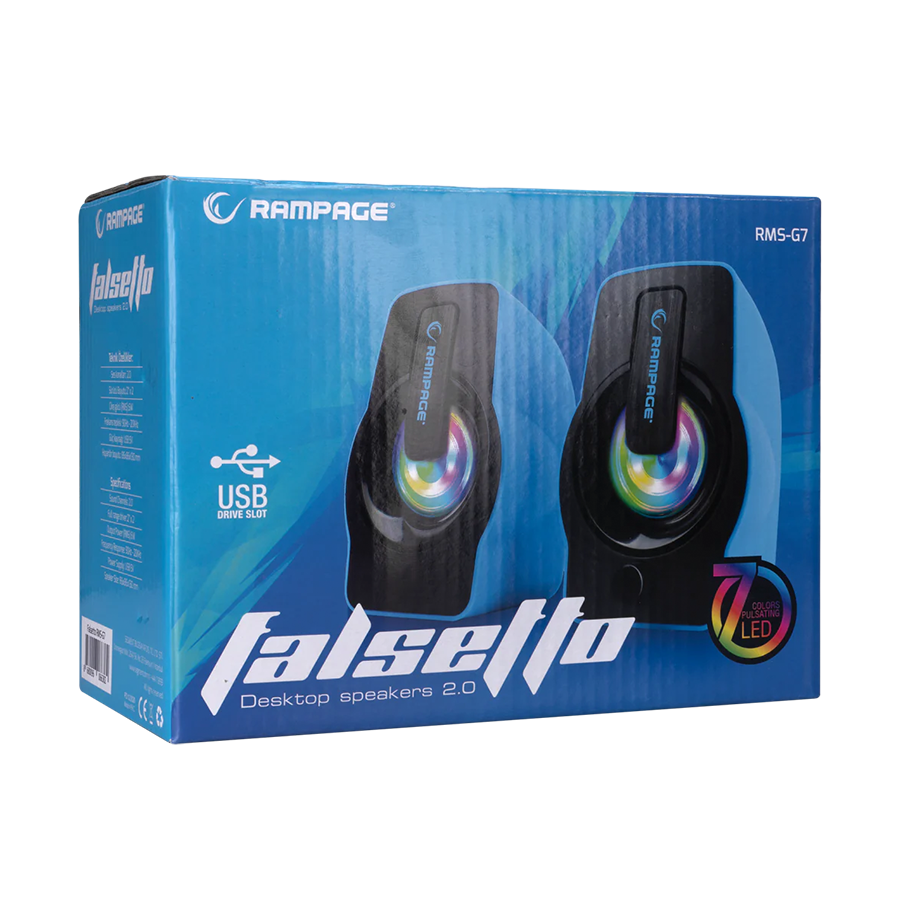 Zvučnici 2.0 gaming RAMPAGE RMS-G7 FALSETTO, 6W, RGB LED blue, 3,5mm + USB napajanje